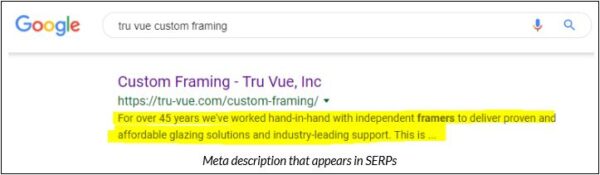 A meta description is a brief (read: under 165 characters) description of the content on a web page that appears within SERPs.