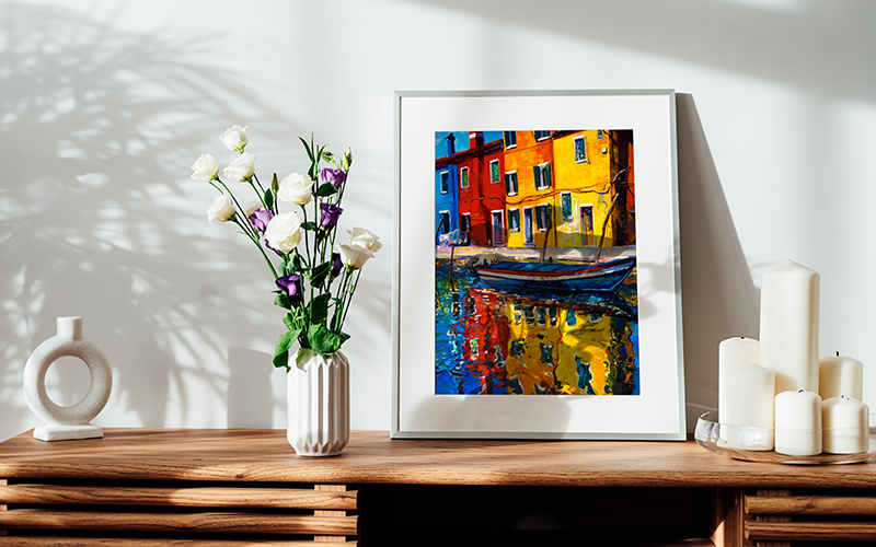 Conservation-grade glass and acrylic blocks 99% of harmful UV rays to help keep artwork vibrant for years to come.